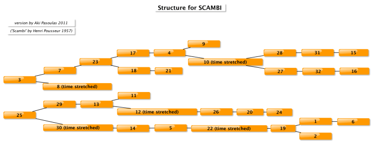 The analogue tape work Scambi was created in 1957 by the Belgian composer Henri Pousseur at the Studio di Fonologia in Milan, and is an electroacoustic composition in open form. The universities of Padua (I), Aalborg (Dk) and Middlesex (GB) collaborated in the ‘DREAM’ project (Digital Re-working of ElectroAcoustic Music). The project led to a permanent exhibit at the Music Instrument Museum in the Castello Sforzesco, Milan in 2012. ‘Scambi’ is the work chosen to demonstrate how analogue compositions can be re-appropriated using digital technology.